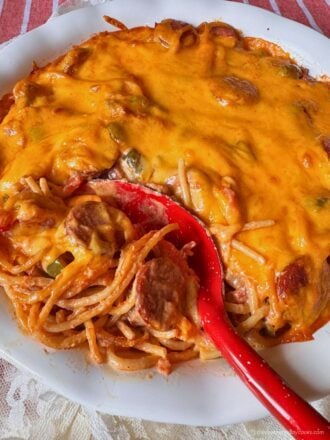 This Cajun Baked Spaghetti is a recipe your family will love. Super versatile too! ❤️WHY WE LOVE THIS RECIPE This recipe is a great twist on a classic! We love